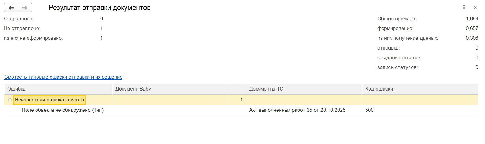 Потыкался несколько раз - документ не проходит. Решил подождать один день, т.к. пару дней назад устанавливал обновление конфигурации и платформы 1С. Подумал, что просто ещё не сделали обновление компоненты Sbis1C.